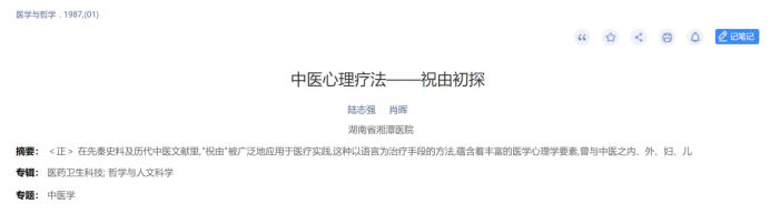 当西方心理学发展起来之后,国人纷纷回头,逐渐发现,祝由原来才是真正高深的心理学。下面截图是近年发表在重要学术期刊甚至是核心期刊上关于祝由术的学术论文——