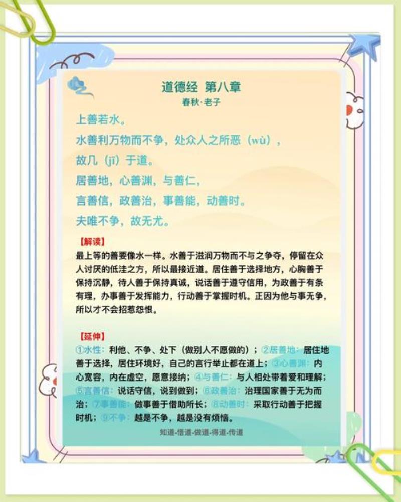 在道德层面,《道德经》提出了“德者,本也;财者,末也”的观点。它认为道德是立人之本,而财富只是道德的附属品。这种智慧提醒我们,在追求物质利益的同时,不要忽视了道德的培养和提升。只有以道德为根基,才能建立起真正的人生大厦。
