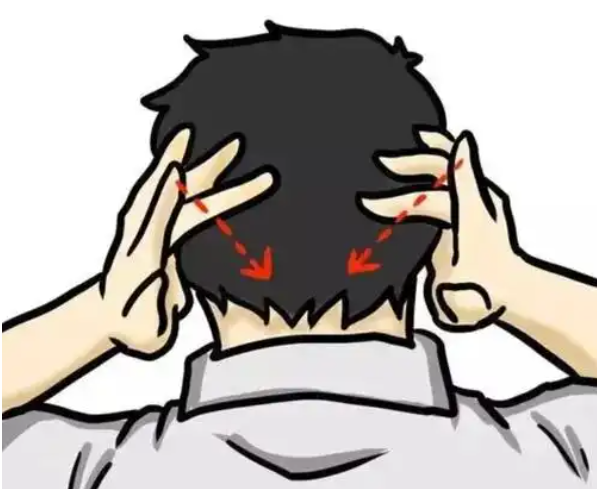 心肾相交法一:鸣天鼓心肾相交法的第一种叫做鸣天鼓。我们的后脑勺就叫做天鼓。鸣天鼓要用到我们的听闻穴和劳宫穴。人体的劳宫穴是最操劳的一个穴位,它是一个火穴,像我们肚子疼了,马上就不自觉地用手去捂肚子,所以它是很操劳的。具体鸣天鼓的做法是:先用我们的手掌心,即用劳宫穴贴住耳孔,把整个手搭在后脑勺上,将食
